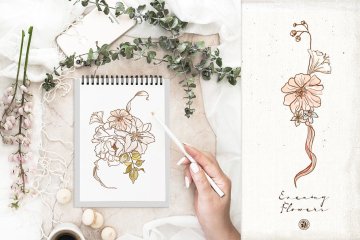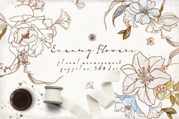 简约描线花卉插画素材 Evening Flowers