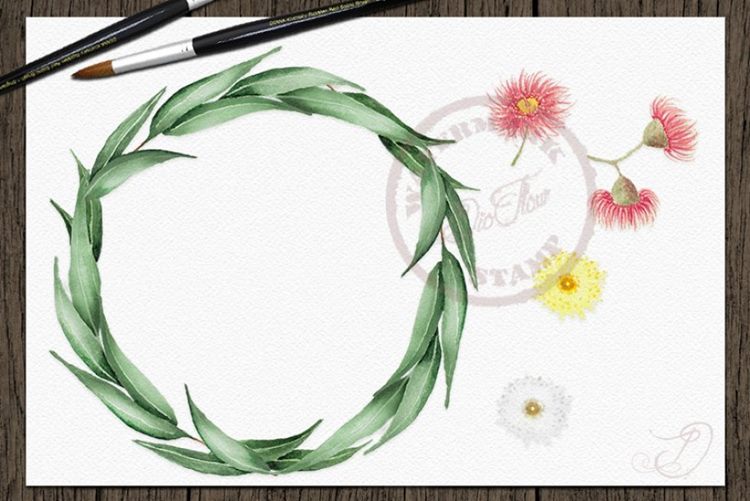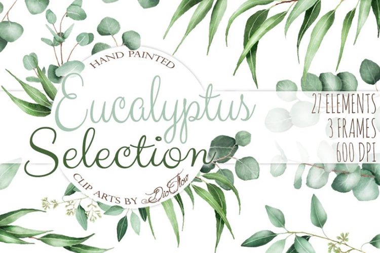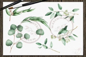 图穷联素材库 » 桉树叶水彩剪贴画水彩装饰字体 Eucalyptus Wate