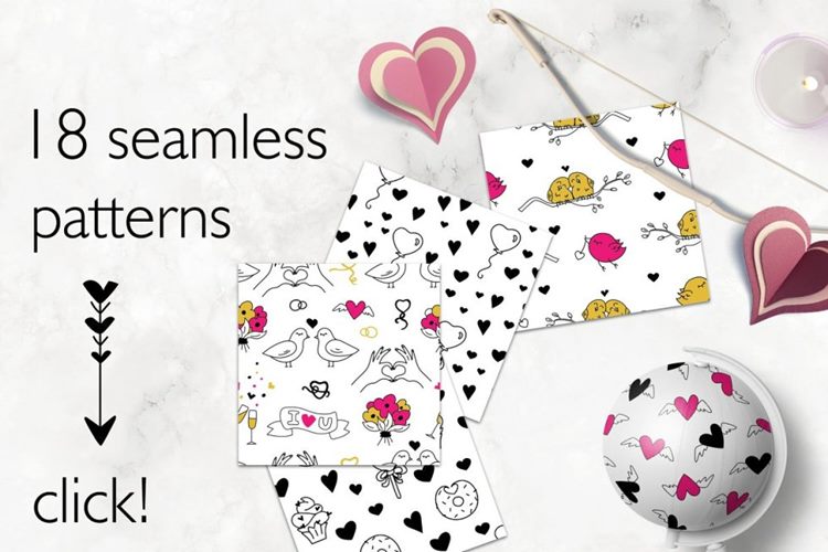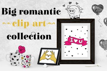图穷联素材库 » 浪漫的情人节卡通插画素材包Romantic set. Gra