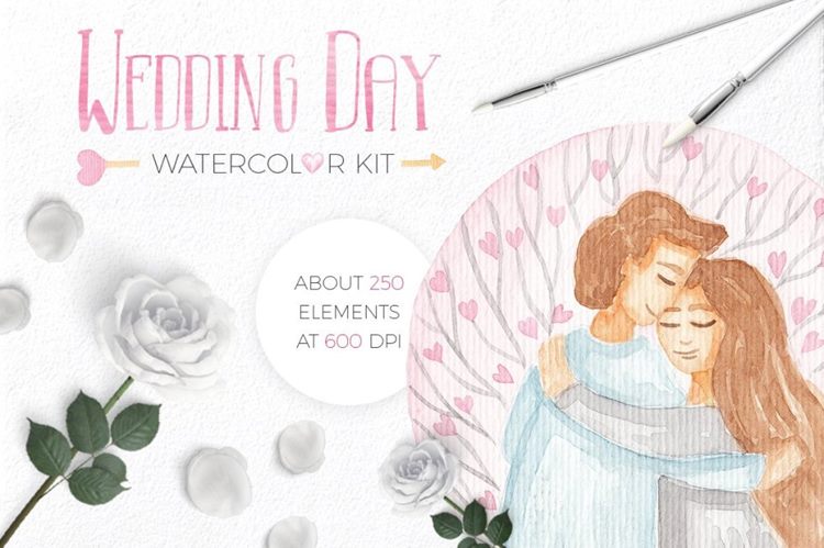 图穷联素材库 » 情人节浪漫水彩插画素材Wedding Watercolor