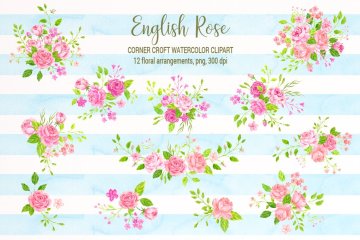 美丽浪漫的英国传统玫瑰剪贴画合集 Watercolor En