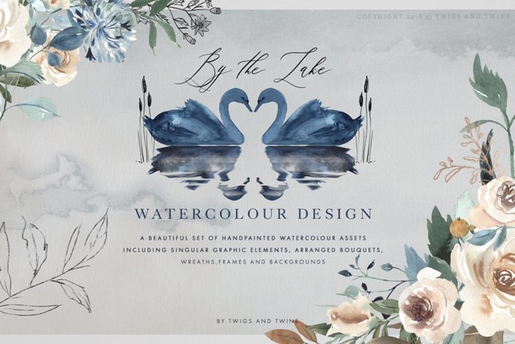 图穷联素材库 » 执子之手与子偕老烂漫气息的水彩手绘素材By the Lake
