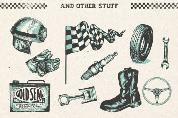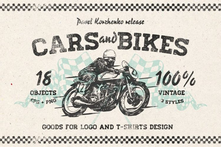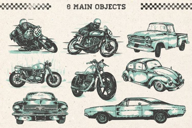 图穷联素材库 » 创意手绘老式汽车摩托车剪贴画合集 Hand drawn Ca