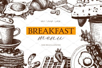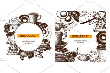 墨水手绘老式早餐模板设计元素 Hand Drawn Brea