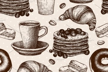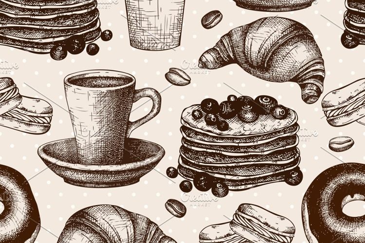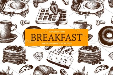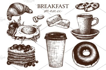 图穷联素材库 » 墨水手绘老式早餐模板设计元素 Hand Drawn Brea