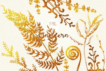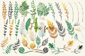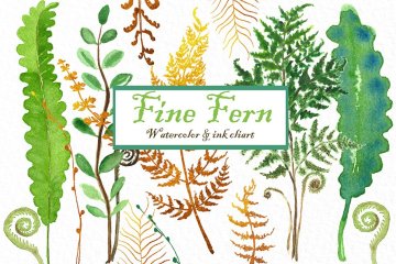 精美蕨类水彩水墨剪贴画合集 Fine ferns. wate