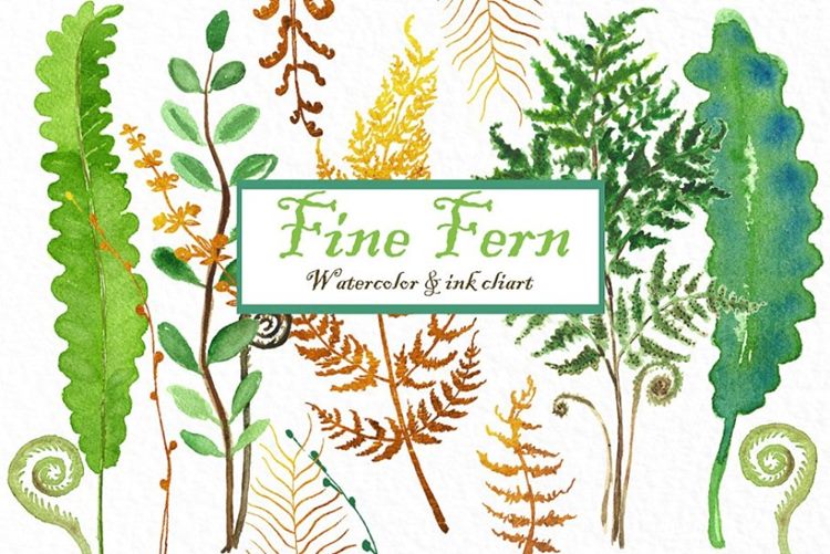 图穷联素材库 » 精美蕨类水彩水墨剪贴画合集 Fine ferns. wate