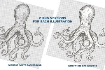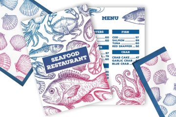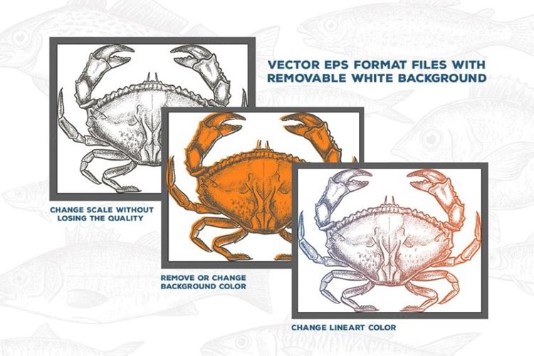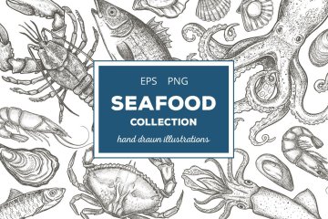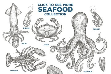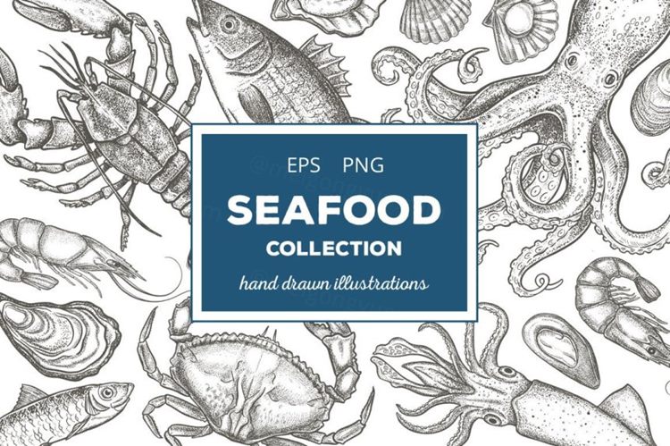 图穷联素材库 » 复古粗略风格的手绘海鲜插图合集 Seafood Illust