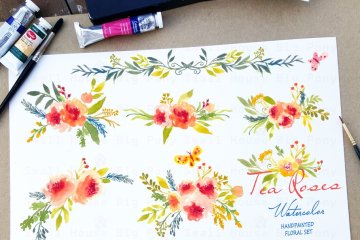 水彩手绘玫瑰花剪贴画合集 Tea Roses Waterco
