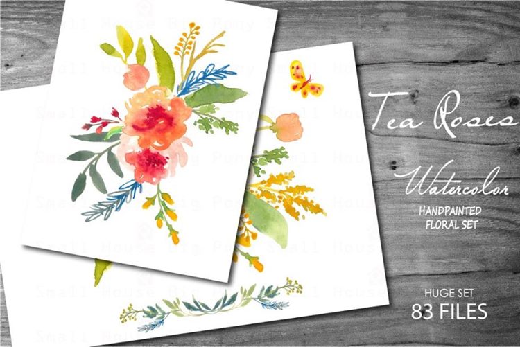 图穷联素材库 » 水彩手绘玫瑰花剪贴画合集 Tea Roses Waterco