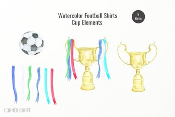 款式各异水彩足球衫剪贴画合集 Watercolor Foot