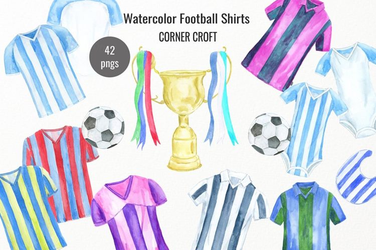 图穷联素材库 » 款式各异水彩足球衫剪贴画合集 Watercolor Foot