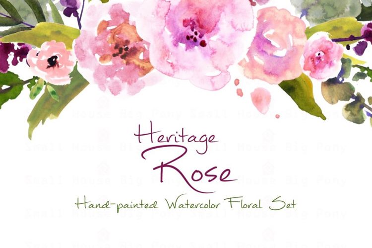 传统复古水彩玫瑰剪贴画合集 Heritage Rose Wa