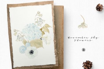 质朴素雅手绘水彩花卉剪贴画 November Sky Flo