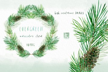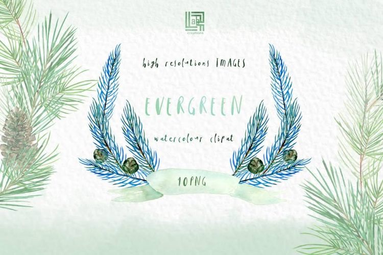 图穷联素材库 » 优雅清新水彩手绘松树剪贴画 Pine Watercolor