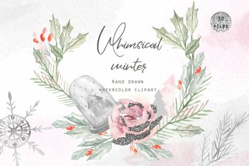 异想天开的冬季水彩剪贴画 Whimsical winter