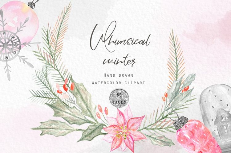 图穷联素材库 » 异想天开的冬季水彩剪贴画 Whimsical winter