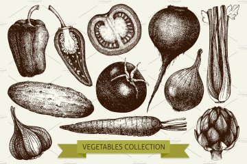 复古风格蔬菜插画素材 Vintage Vegetables