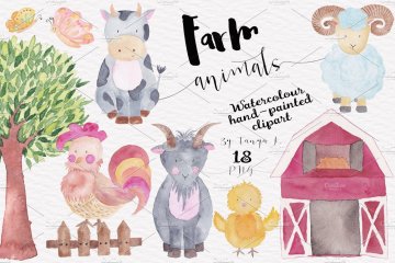 图穷联素材库 » 农场牧场动物水彩插画套件 Farm Animals Big