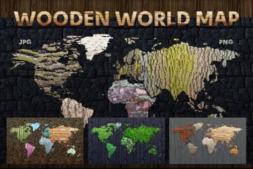 木纹创意世界地图设计图形素材 Wood Texture Wo