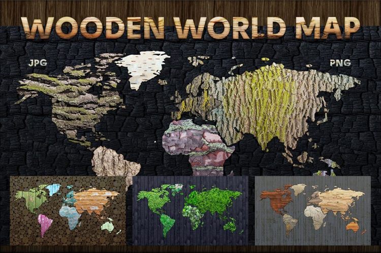 图穷联素材库 » 木纹创意世界地图设计图形素材 Wood Texture Wo