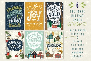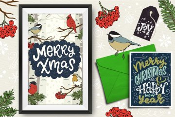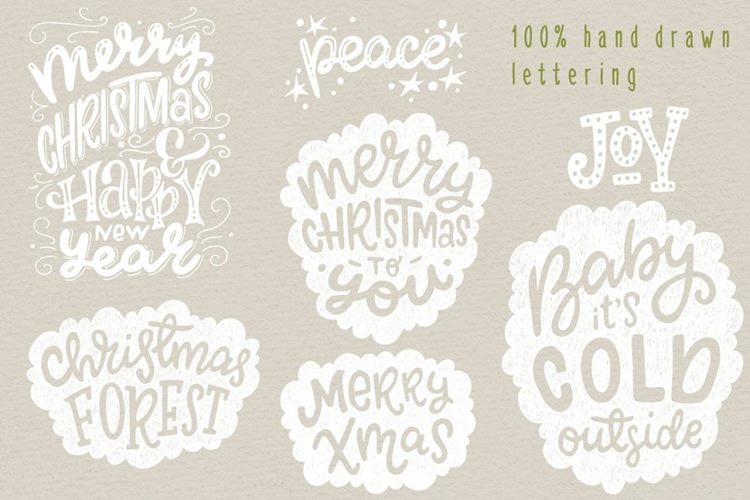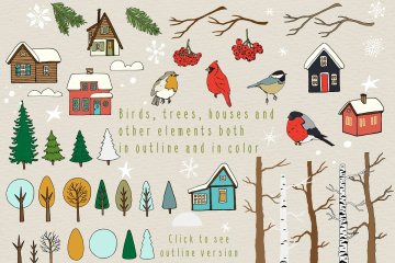 图穷联素材库 » 50个不同的手绘矢量剪贴画元素圣诞森林集合Christmas
