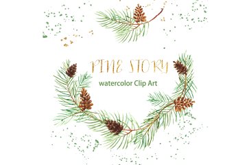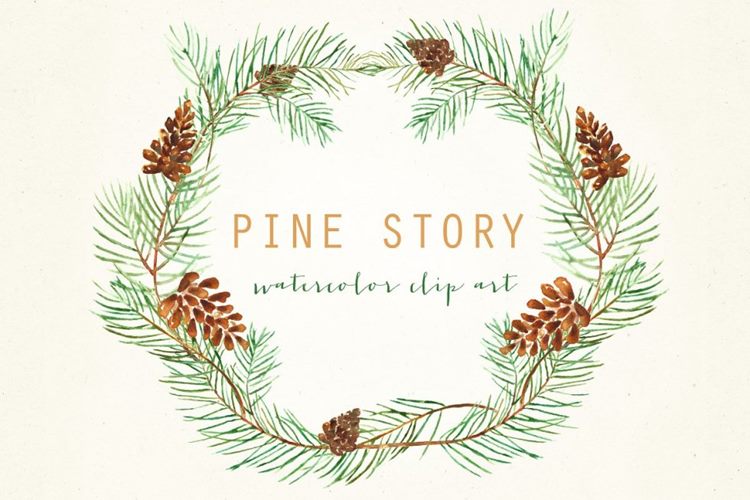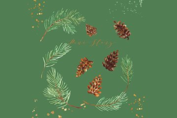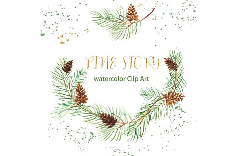 图穷联素材库 » 松枝水彩剪切画 Pine branches Watercol