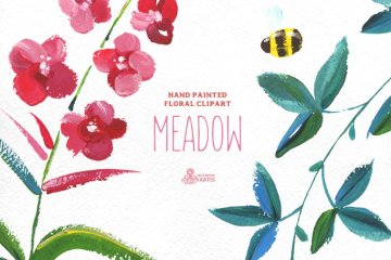 牧场花卉小草水彩手绘剪贴画 Meadow Floral cl