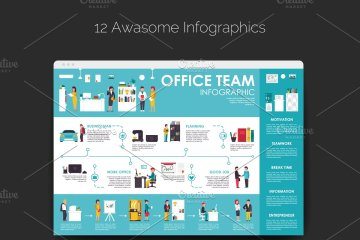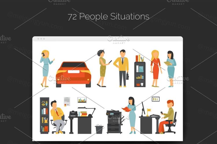 图穷联素材库 » 扁平风格办公楼层办公室概念插图 Office Flat Co