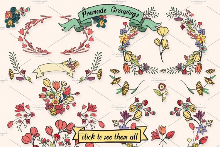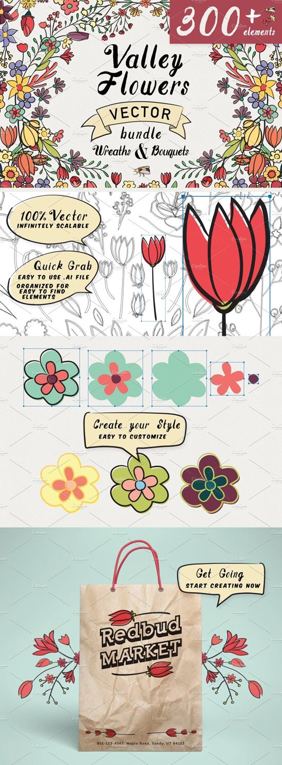 图穷联素材库 » 繁花似锦水彩花卉插画集锦 Valley Vector Flo