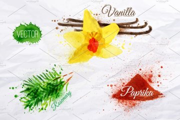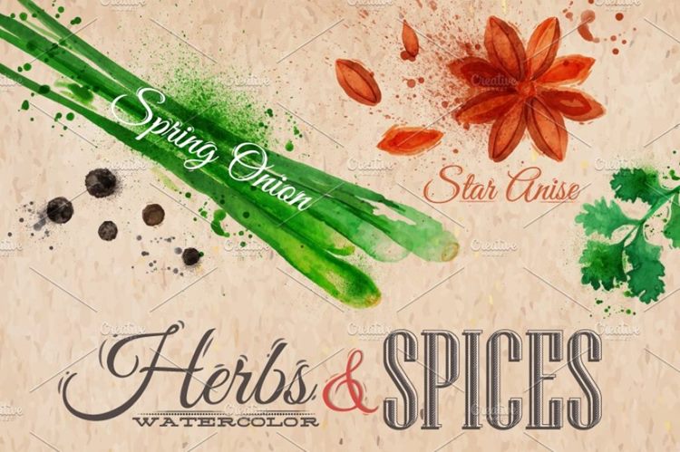 图穷联素材库 » 药草香料水彩插画 Herbs spices watercol