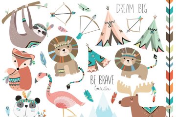 图穷联素材库 » 部族动物手绘剪贴画 Huge Tribal Animal C