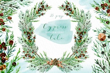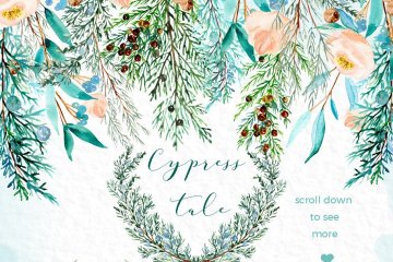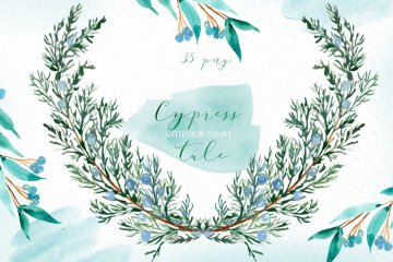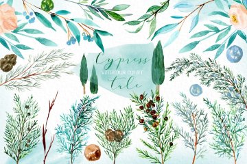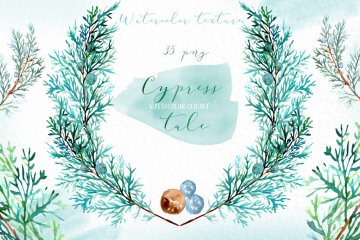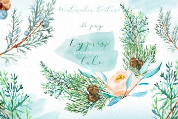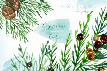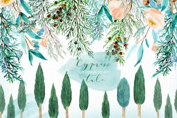 图穷联素材库 » 柏树水彩剪贴画 Cypress tale. Watercol