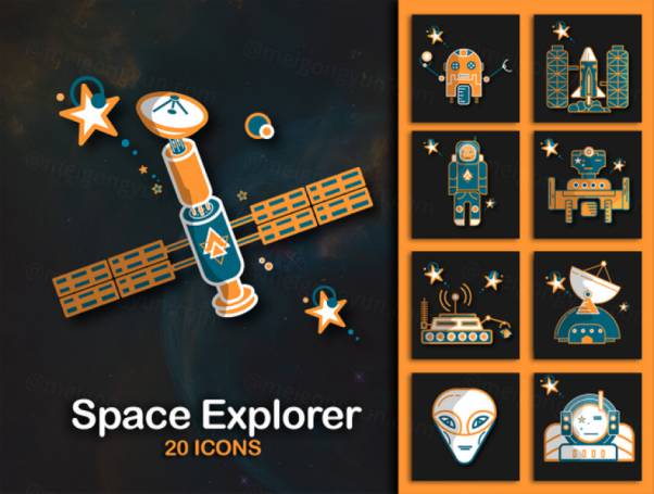 图穷联素材库 » 20个世界太空探险家宇航员矢量彩色图标集Space Explorer Icons