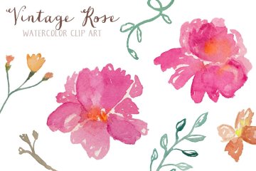 复古风格水彩玫瑰花剪贴画艺术 Vintage Rose Wa