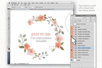 图穷联素材库 » 水彩花环设计工具包 Watercolour Wreath C