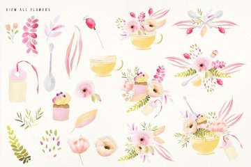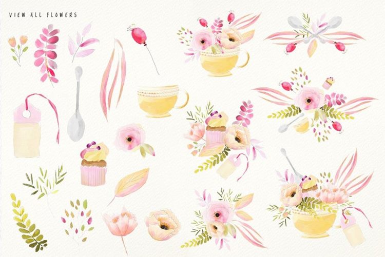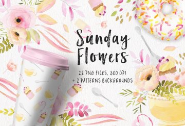 图穷联素材库 » 清新淡雅的水彩花卉插画素材 Sunday’s Flowers