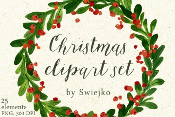 图穷联素材库 » 圣诞花环剪贴画 Christmas wreaths clip