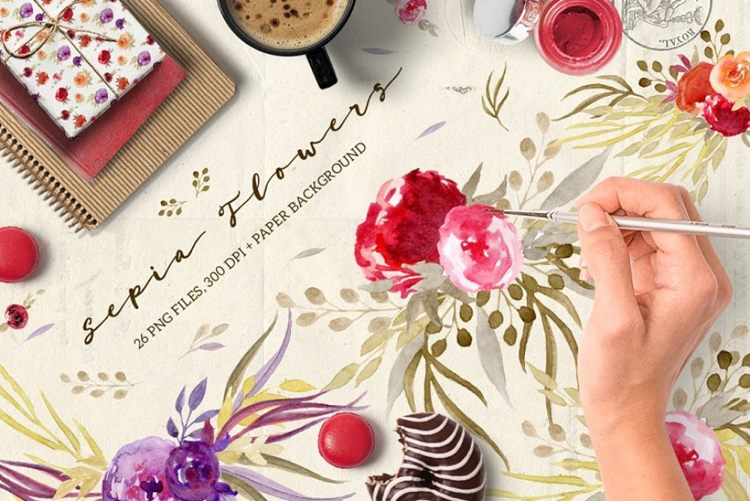图穷联素材库 » 手绘花卉素材插画 Sepia Flowers