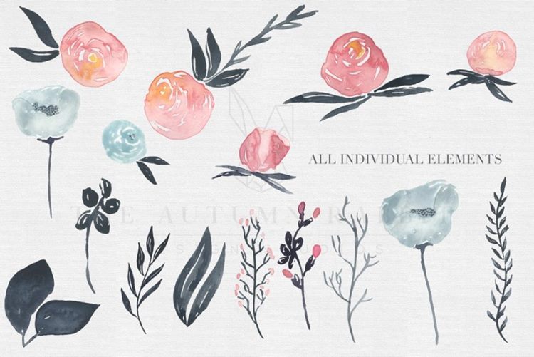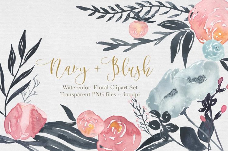 图穷联素材库 » 水彩花卉插画 Navy Blush Watercolor
