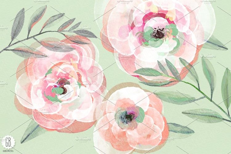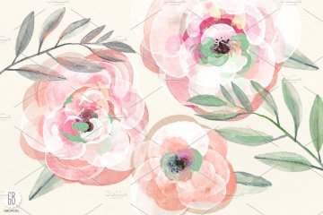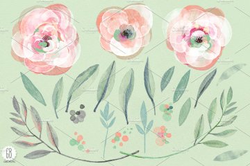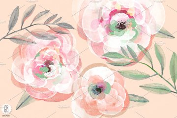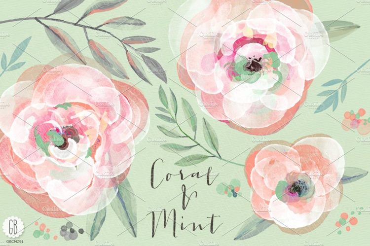 图穷联素材库 » 水彩玫瑰插画素材 Watercolor coral mint