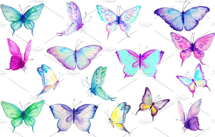 图穷联素材库 » 水彩蓝色蝴蝶插画 Watercolor Blue Butte