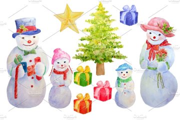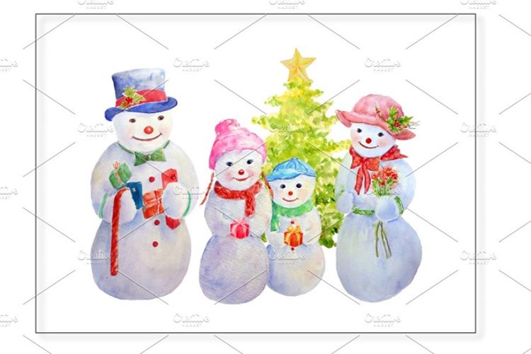图穷联素材库 » 圣诞节水彩雪人插画 Watercolor Snowman F