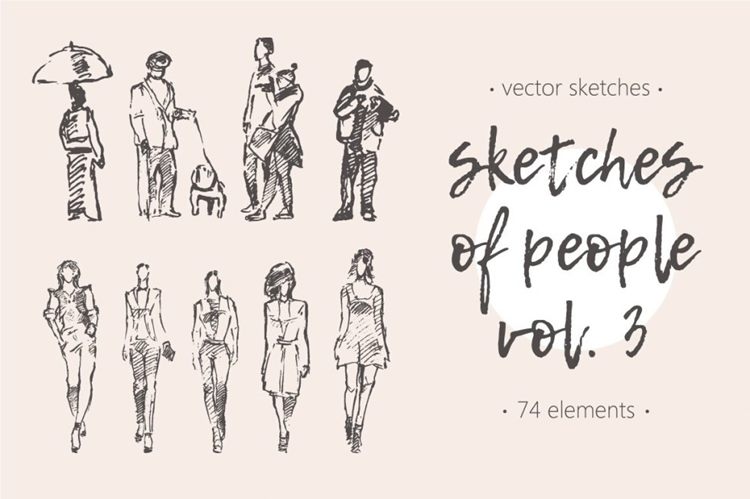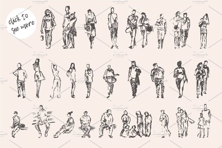 图穷联素材库 » 人物素描插画 Sketches of different p