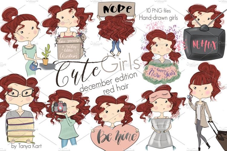 图穷联素材库 » 卡通女孩插画素材 Cute Girls December E