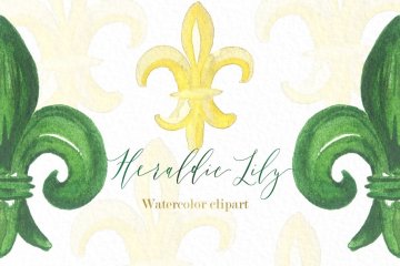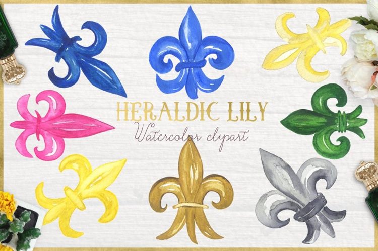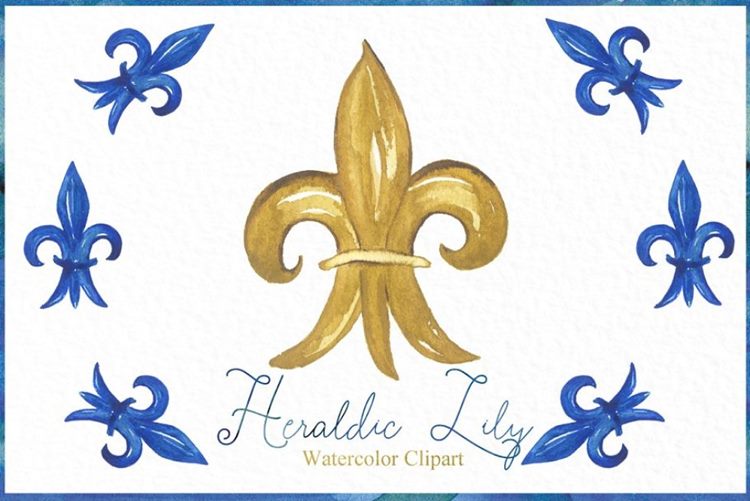 图穷联素材库 » 水彩剪贴画 Heraldic Lily. Watercolo