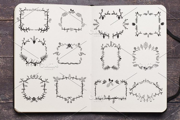 图穷联素材库 » 手绘框架插画 Hand-drawn frames and d