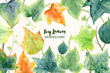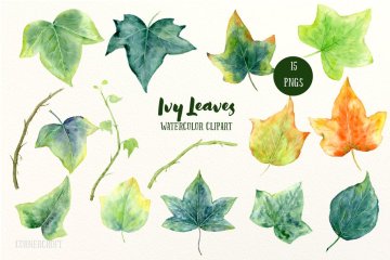 图穷联素材库 » 水彩常青藤叶插图 Watercolor Ivy Leaf I