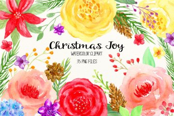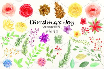 水彩圣诞节花卉插画元素 Watercolor Clipart