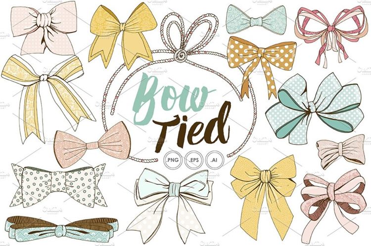 图穷联素材库 » 手绘领结丝带插画 Tied Bow Clip Art Han